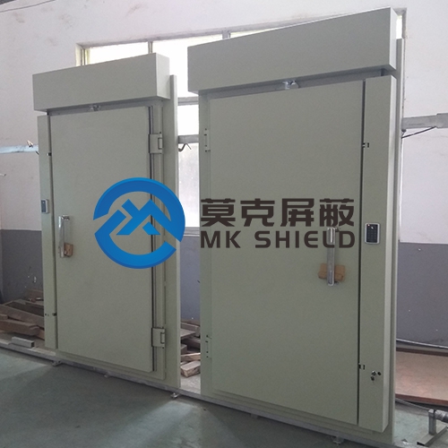 計算機、通信機及電子設(shè)備在正常工作時會產(chǎn)生一定強度的電磁波,該電磁波可能會對其它設(shè)備產(chǎn)生干擾或被專用設(shè)備所接收,以竊取其工作內(nèi)容。同時,這些電子設(shè)備及實驗室檢測、測試也需要在小于一定強度的電磁環(huán)境下保證其正常工作。屏蔽室就用金屬板體制成六面體,將電磁波限制在一定的空間內(nèi)使其場的能量從一面?zhèn)鞯搅硪幻媸艿胶艽蟮乃p。屏蔽室就是利用其屏蔽的原理,用金屬材料制成一個六面體房間,由于金屬板對入射電磁波的吸收損耗、界面反射損耗和板內(nèi)反射損耗,使其電磁波的能量大大的減弱,而使屏蔽室產(chǎn)生屏蔽作用。電磁屏蔽室是用于信息安全的,那電磁屏蔽機房最關(guān)鍵的部位,電磁屏蔽門,你了解多少呢?現(xiàn)在就由我們莫克屏蔽的技術(shù)人員來帶你了解一下:
